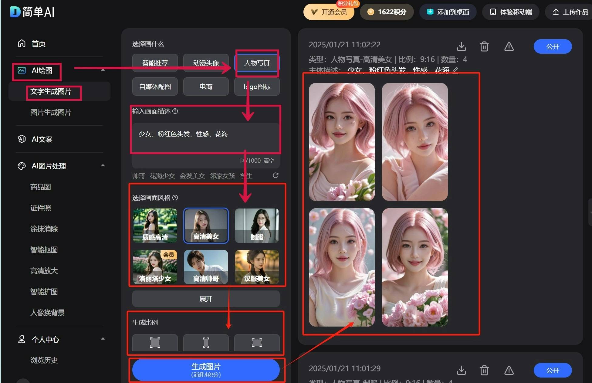 第二步:你能够正在【输入画面描述】模块,输入想要创做的画面描述,就可免得费下载啦~
